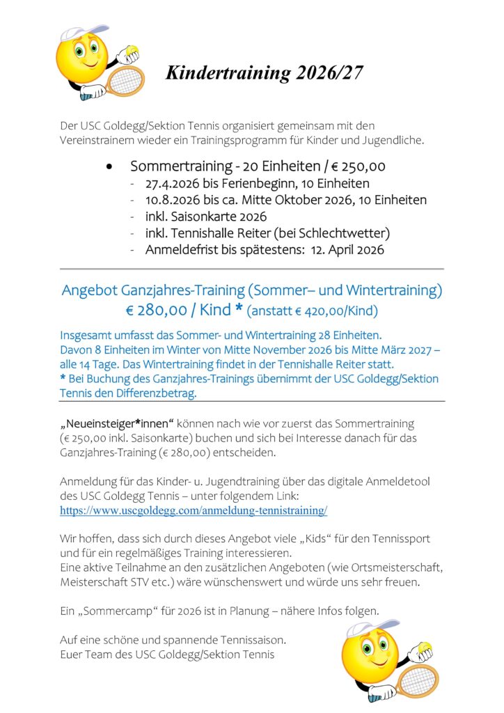 Herzlich willkommen in der Tennissektion des USC Goldegg!